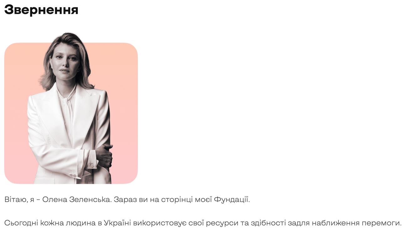 Но с началом полномасштабной войны жена президента, не выехавшая с детьми из страны, объединила свои проекты в один Фонд первой леди Украины.