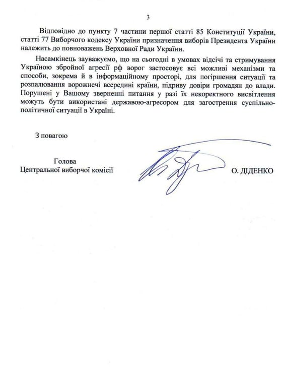 Ответ ЦИК о полномочиях Зеленского в мае. Фото: скриншот